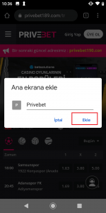 - Son olarak Ekle seçeneğine tıklayarak kendinizin oluşturduğu Privebet Mobil Uygulamasını kullanmaya başlayabilirsiniz.