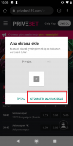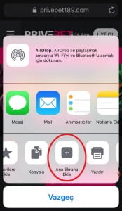 - Açılan ekranda ”ana ekrana ekle” seçeneğini de seçip uygulama ismini Privebet olarak düzenleyin.