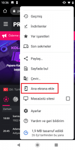 - Chrome tarayıcının sağ üst köşedeki üç noktaya tıklayıp ana ekrana ekle seçeneğini seçin.